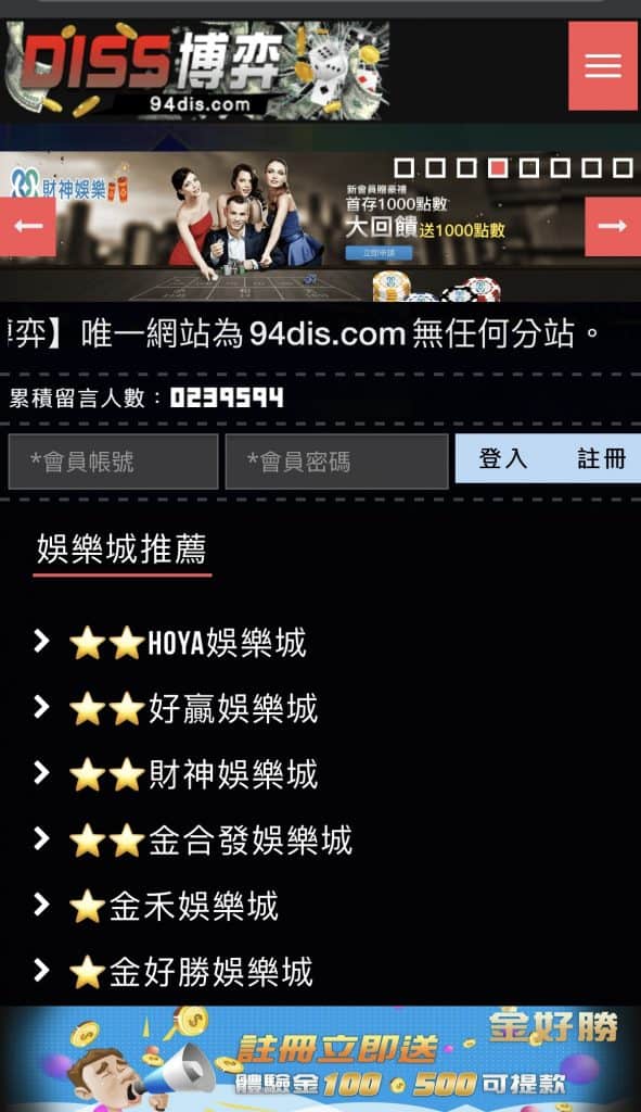 作為一個公平公正的娛樂城評價網,最重要的就是不能為了錢而出賣靈魂!據肉眼觀察94大發網一點入,不管上方還下方,或者動態跑馬燈,不斷跳出HOYA娛樂城財神娛樂城、金好勝娛樂城、財神娛樂城、金合發、金禾娛樂城評價廣告,怎麼看都是繞著這些現金版推薦在跑…首先觀感扣分,公信力下降,這類推薦是你想要的嗎?