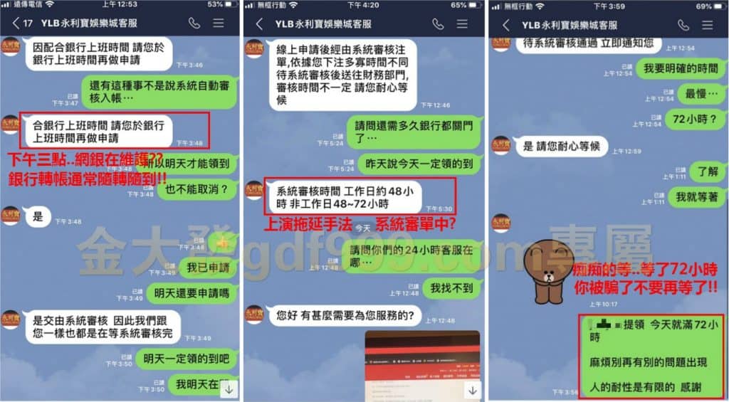 每當要提款的時候總是那麼雖小老是遇到網銀在維護?系統在維修?真是聽他在鬼扯!通常網銀維護完成之後黑網就會告訴你系統維護中無法出金,系統維護完繼續跟你瞎扯審單當中,就這樣莫名其妙的被拖了一個禮拜還沒辦法出金!不要在被拖延話術矇騙了!無期限的維護只是不出金的藉口