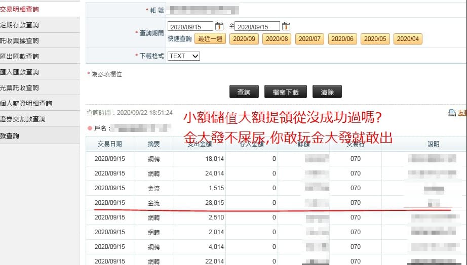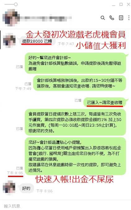 看到這邊是否納悶…幹嘛分那麼多次匯款?礙於台灣政府設立的洗錢防制法,為避免會員收到銀行電話關切,只能分批匯款,目前金管會都在監控出入金大額並且頻繁出入的帳戶做追蹤關切,相信不少資深娛樂城會員都收過銀行電話關切,金大發不僅僅會出金,會員安全沒人比本平台更注重!當然贏破百萬的會員也可選擇面交服務,保證玩得安心又開心