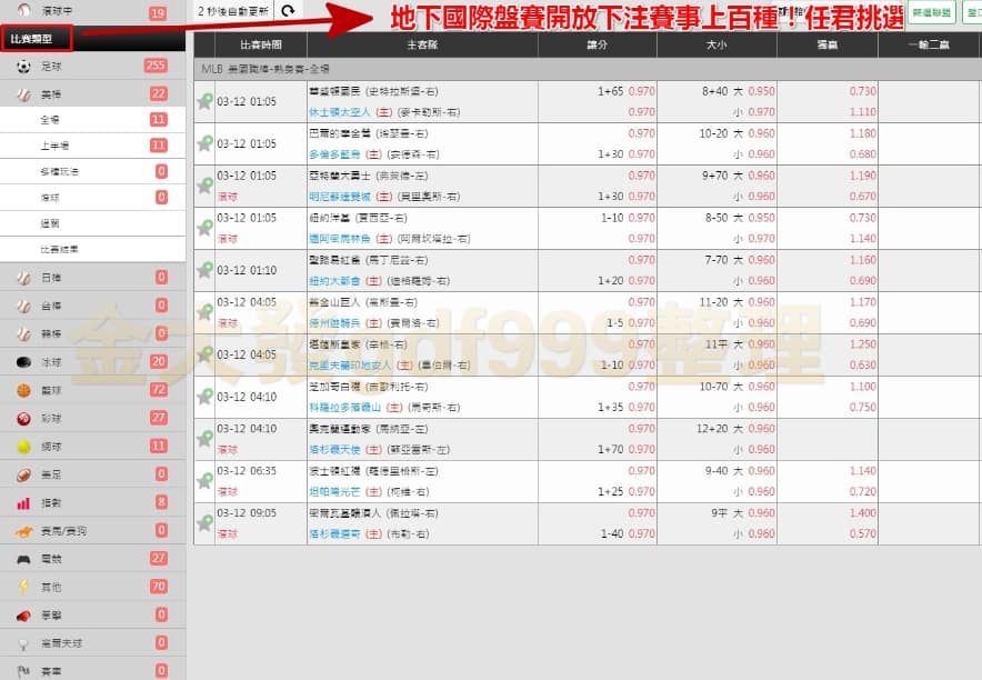 金大發小編仔細比較過,威剛運彩開的賽事,地下國際盤也都有,基本的NBA籃球,MLB美棒,足球,NHL冰球,台灣運彩都有開!如果你喜歡的賽事比較特殊,例如:其它籃球/美足/賽馬/日棒/韓棒/網球/彩球猜大小玩單雙,甚至電競賽事,國際盤優勢比較大,只要有在比賽的賽事國際盤都敢開出來讓玩家下注!想玩看看不一樣賽事可以朝國際盤觀看唷!