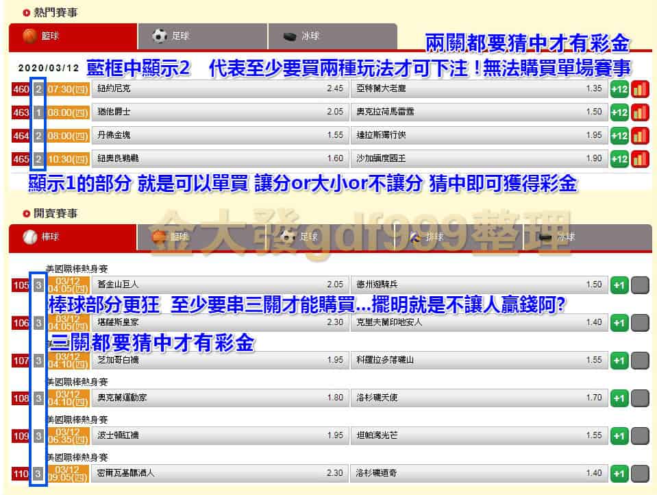 額外補充:有玩過運彩的朋友都知道能下注單場的賽事少之又少,基本上想下注會被運彩硬性規定至少要串兩關,什麼是串兩關呢?請往下看